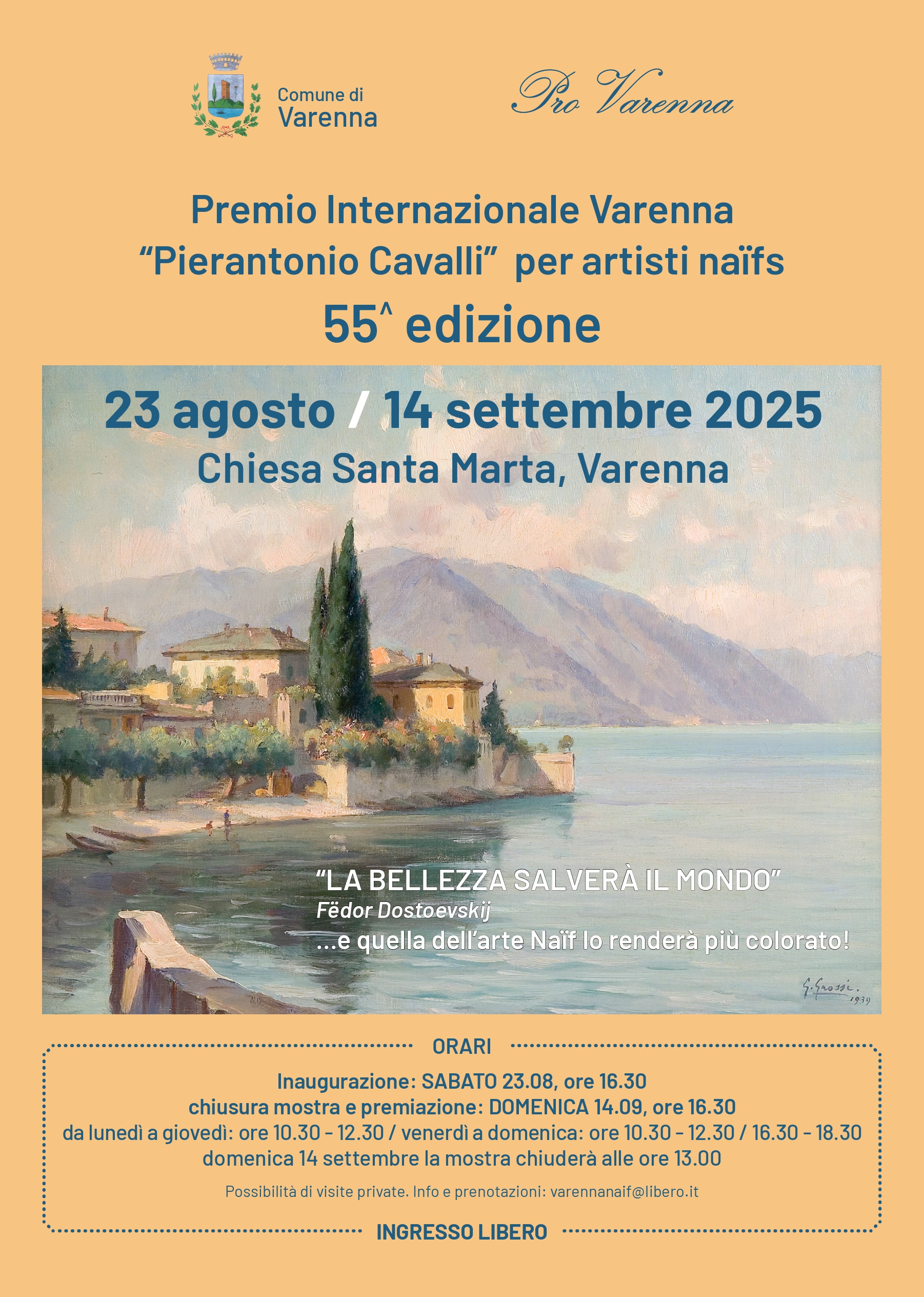 Il Comune di Varenna e l’Associazione Pro Varenna annunciano la 55ª edizione del Premio Internazionale Varenna “Pierantonio Cavalli” per artisti naïfs, un appuntamento di grande tradizione e prestigio dedicato all’arte naïf.