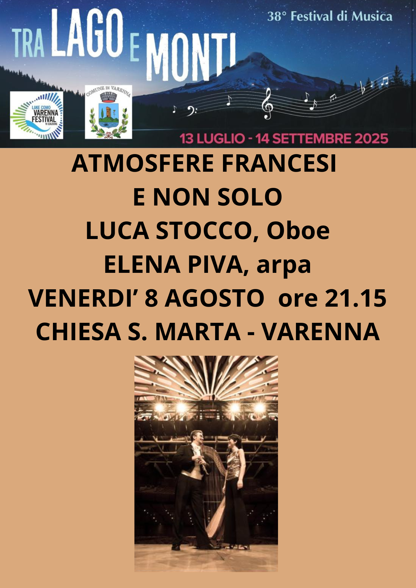 Venerdì 8 agosto alle 21.15 si terrà presso la chiesa di Santa Marta a Varenna, il concerto “Atmosfere francesi (e non solo)“.