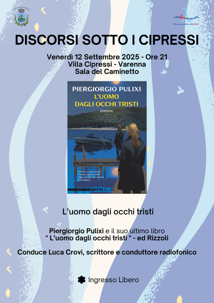 Venerdì 12 settembre alle ore 21.00 presso la sala del Caminetto di Villa Cipressi incontro con lo scrittore Piergiorgio Pulixi.