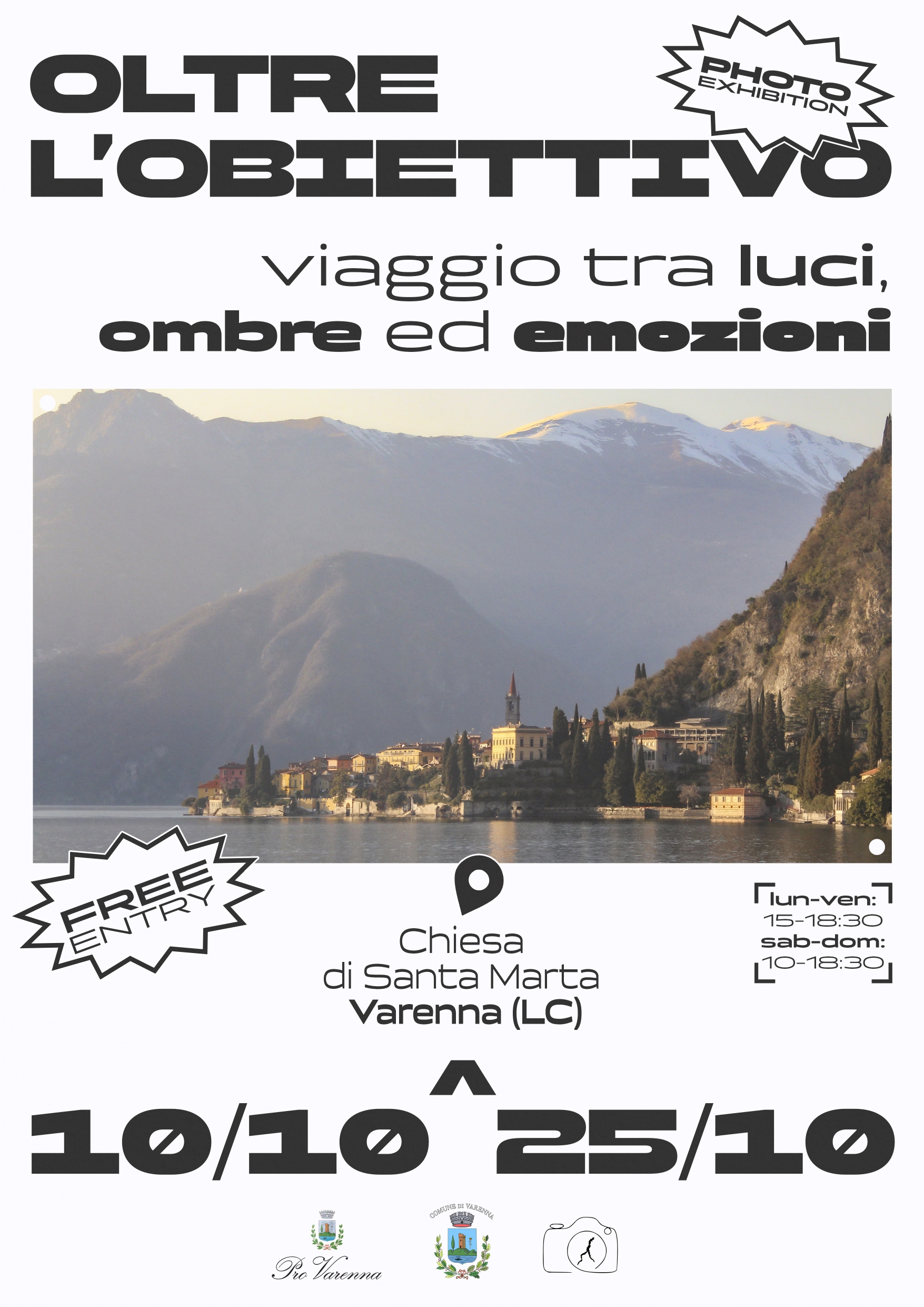 Da Venerdì 10 ottobre fino a Sabato 25 ottobre, sarà possibile visitare, presso la chiesa di S. Marta, la mostra fotografica “Oltre l’obiettivo – viaggio tra luci, ombre ed emozioni“.
