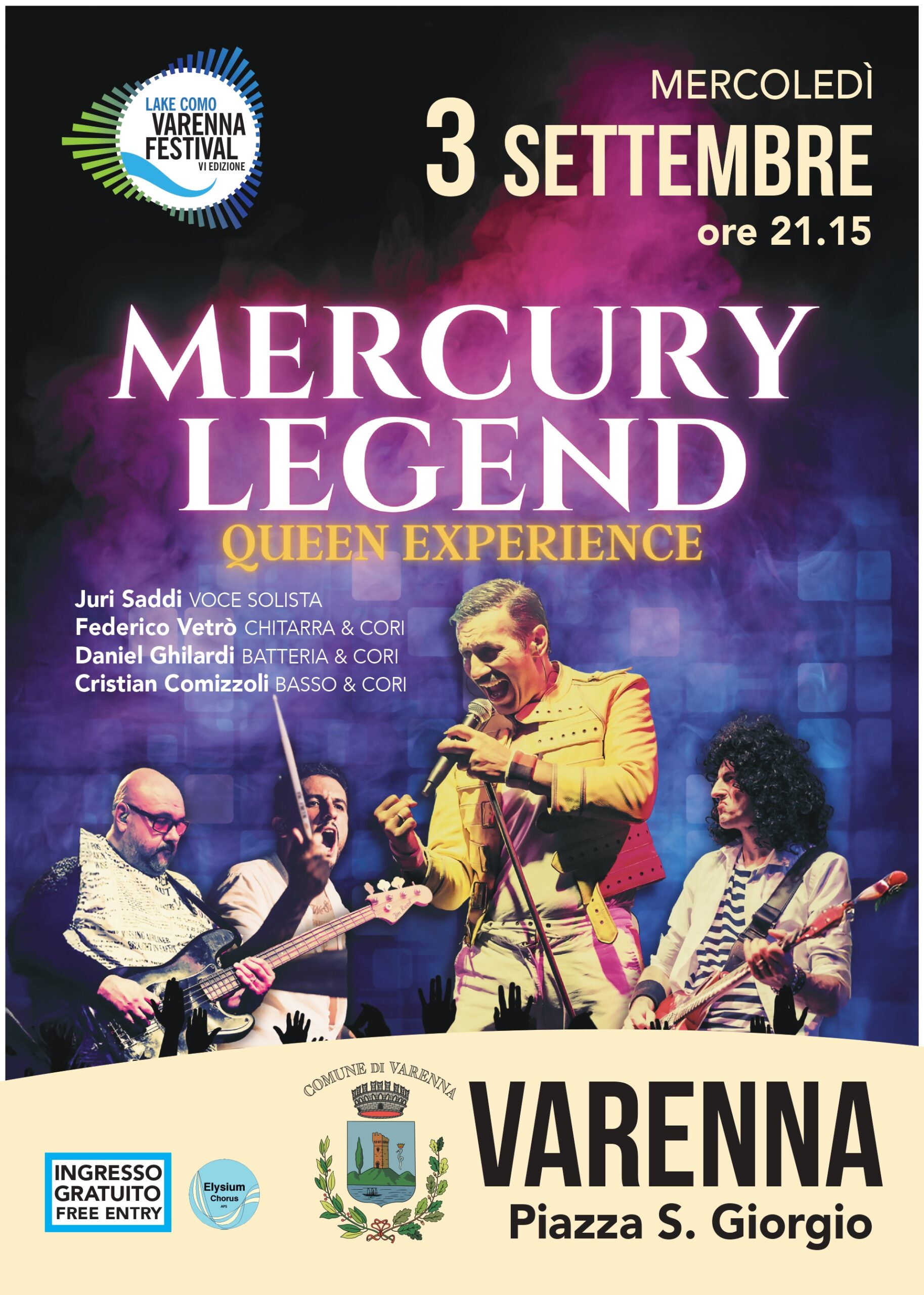 Prosegue con entusiasmo la sesta edizione del Varenna Festival, che il prossimo mercoledì 3 Settembre, alle ore 21.15 in Piazza San Giorgio, ospiterà un evento tra i più attesi dell’intera rassegna: “MercuryLegend – QUEEN Experience”, spettacolo tributo alla leggendaria band britannica.