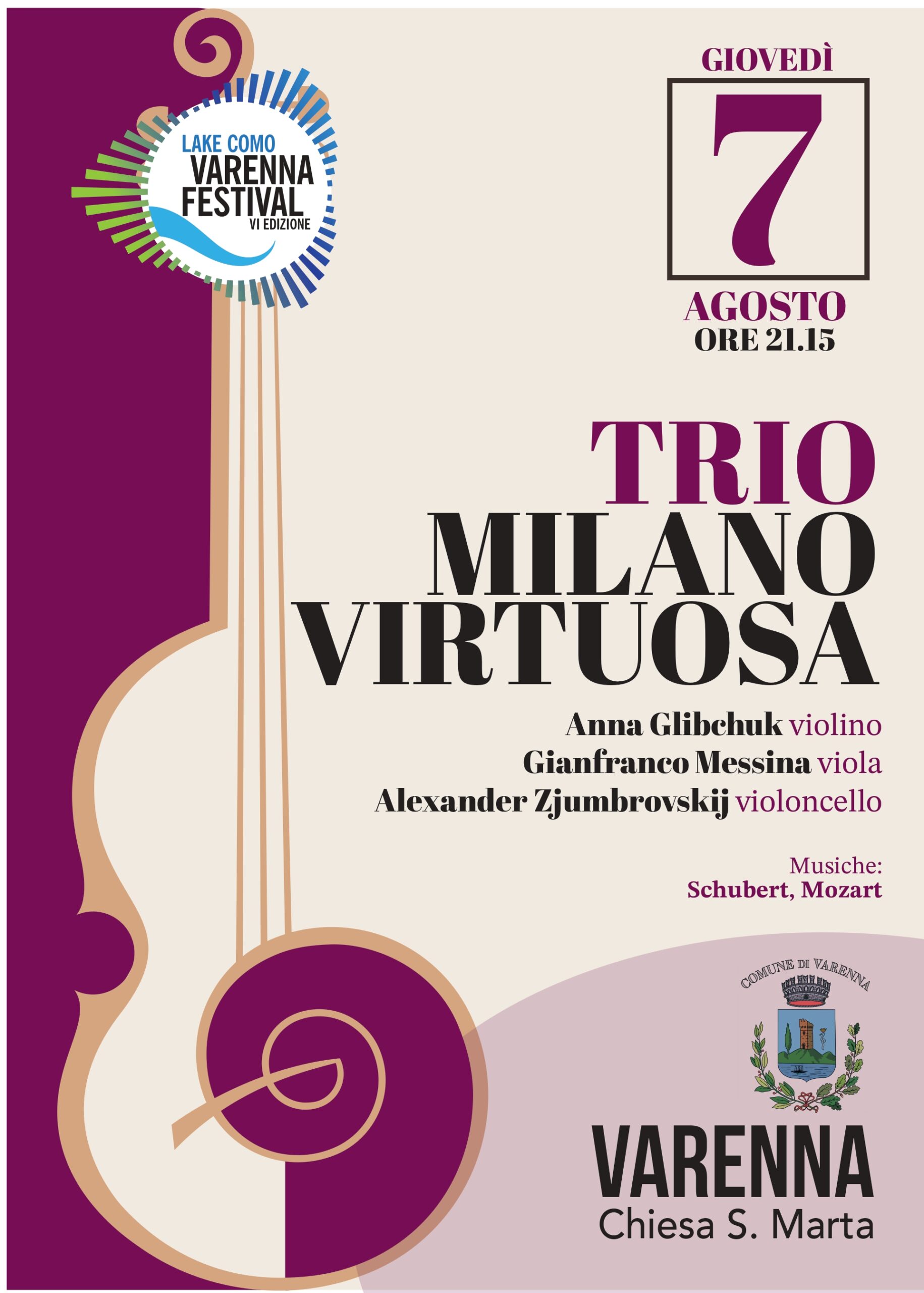 La suggestiva cornice della Chiesa di Santa Marta a Varenna ospiterà giovedì 7 agosto, alle ore 21.15, un appuntamento imperdibile della sesta edizione del Varenna Festival: protagonista della serata sarà il Trio Milano Virtuosa, formato da Anna Glibchuk (violino), Gianfranco Messina (viola) e Alexander Zjumbrovskij (violoncello).